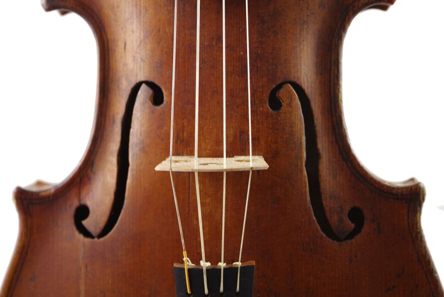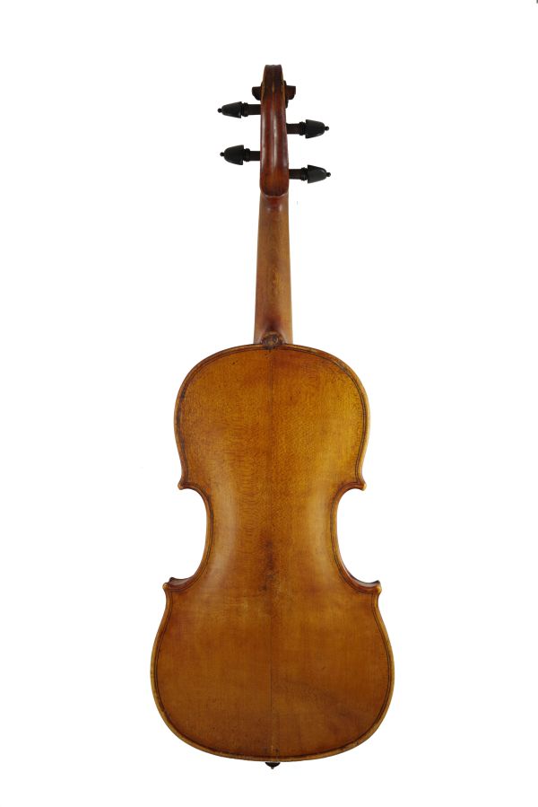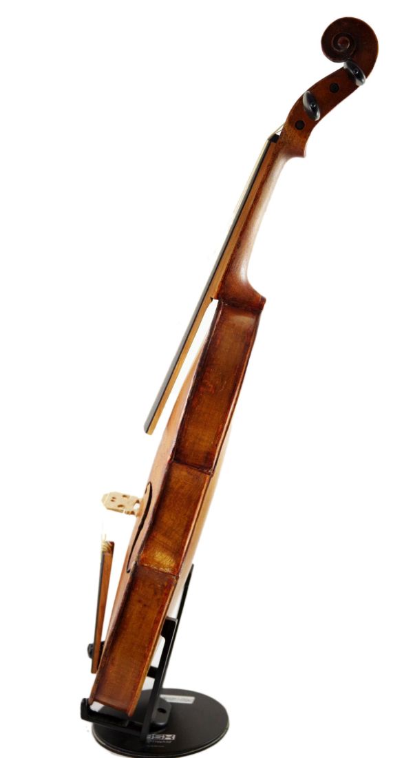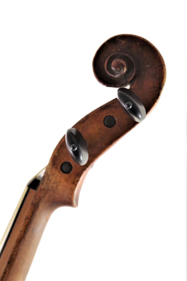 Barokviool, zonder label, uit het begin van de 19de eeuw. Vermoedelijk Frans, Mirecourt. De breuk in het bovenblad onder het f-gat, kant sol, werd op een professionele manier hersteld. Dit heeft géén enkele invloed op de kwaliteit van het instrument. Viool met heel goede eigenschappen zoals een heel warme klank, evenwichtig in alle snaren (darmsnaren), goed volume en perfecte bespeelbaarheid. Een barokviool voor een zéér schappelijke prijs !